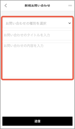 お問い合わせの種別を選択し、タイトルとお問い合わせの内容を入力して、「送信」をタップしてください。