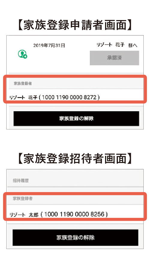 手続きが完了すると、申請者、招待者ともに家族登録が完了した相手の名前が表示されます。