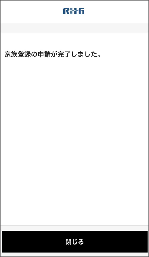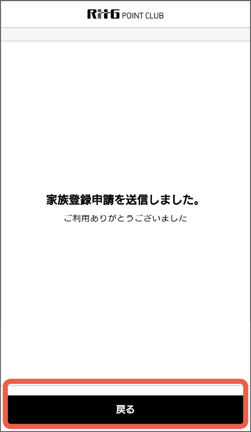 「家族登録申請を送信しました」と表示されますので、「戻る」をタップすると申請は完了です。