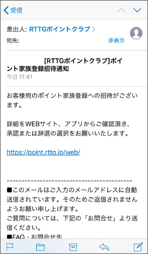 「ポイント家族登録」を申請されたポイント会員にはメールが届きます。