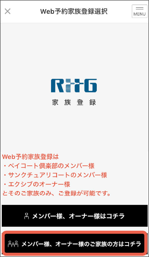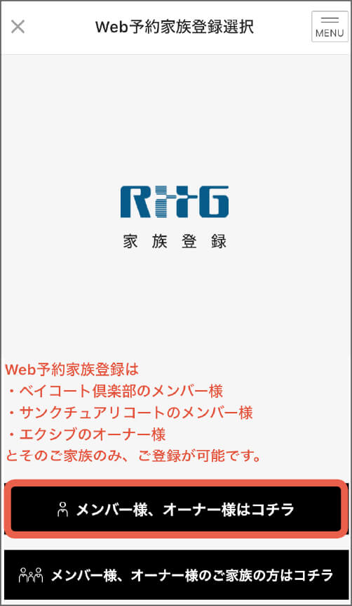 「メンバー様、オーナー様のご家族の方はコチラ」をタップしてください。