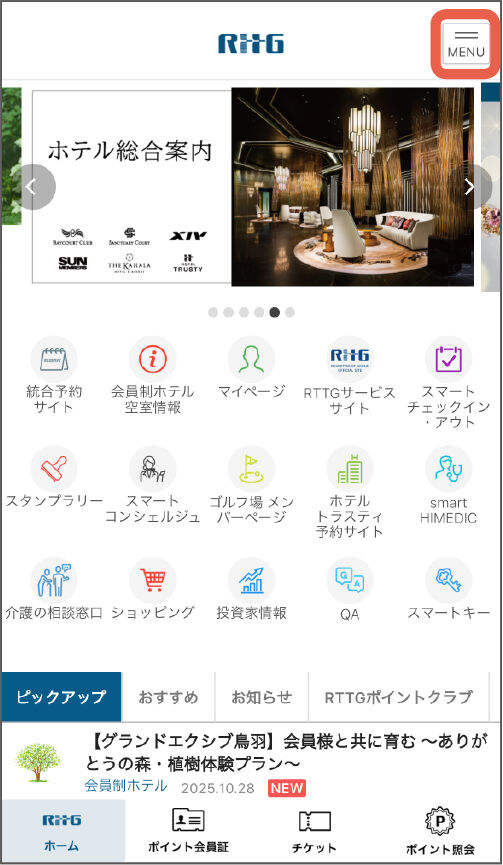 「メンバー様、オーナー様はコチラ」をタップしてください。