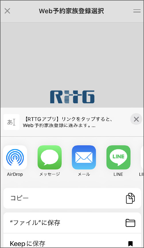メンバー様、オーナー様へWeb予約家族登録を申請するためのメッセージ送信方法を選択し、送信してください。