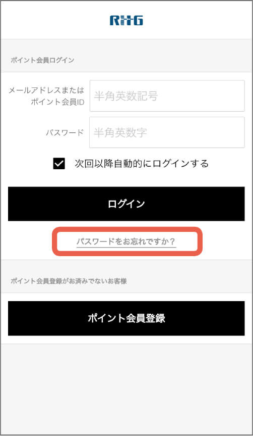 ご登録のメールアドレスまたは携帯番号に仮パスワードがメールまたはSMS(ショートメール)で届きます。その仮パスワードでログインして、正式なパスワードをご入力ください。