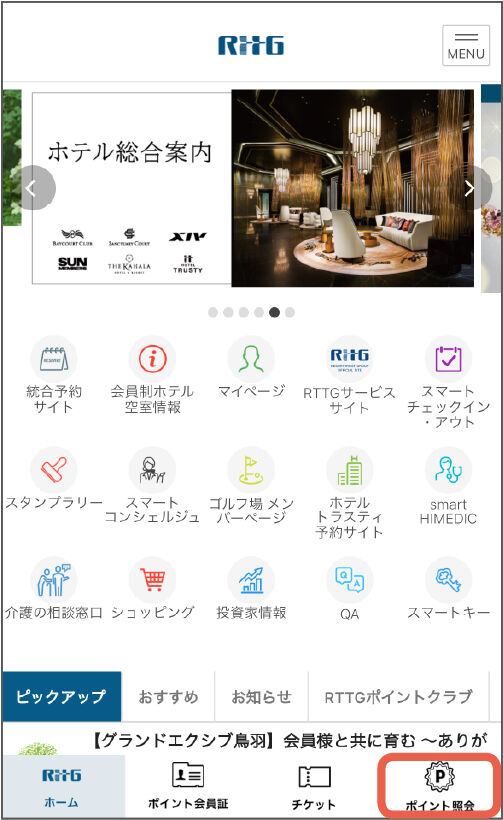 ホーム画面から「ポイント照会」をタップしてください。