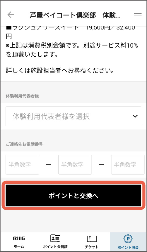 お申込み内容をご確認いただき、よろしければ「ポイントと交換へ」をタップしてください。