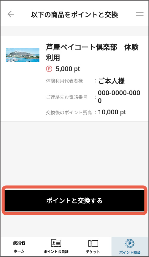 確認画面が表示されますので、最終確認をしてから、「ポイントと交換する」をタップしてください。