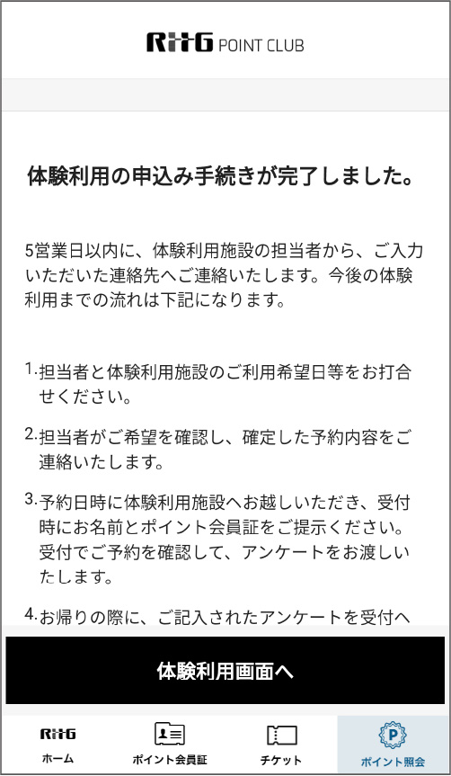 これで「体験利用」申込み手続きは完了です。