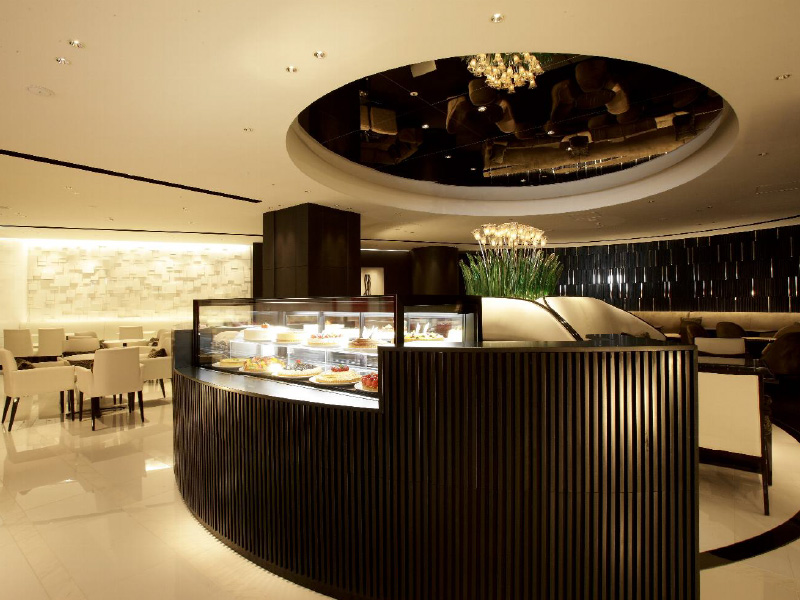 なんばダイニングメゾンの玄関、お客様をお迎えするための象徴的なカフェとしてホテルのラウンジのエスプリを表現。